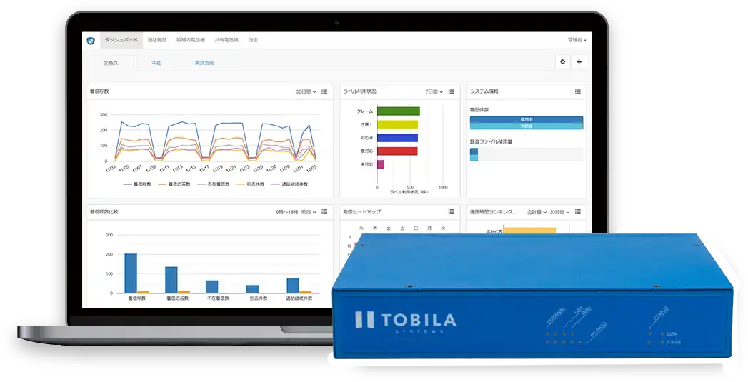 データはクラウド管理のため、複数拠点の通話内容を簡単に管理できます。