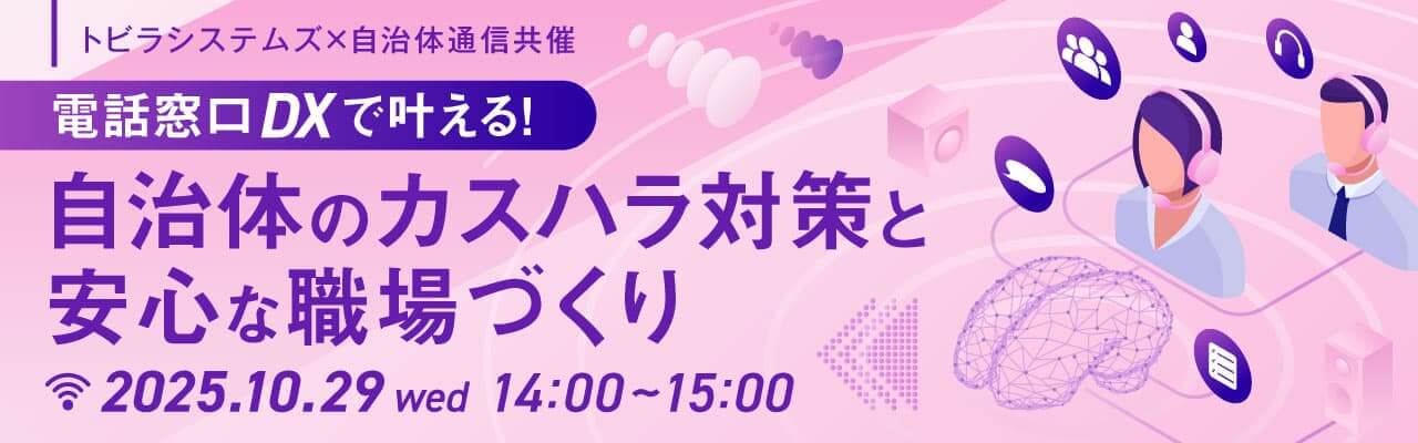 【10/29(水)開催】トビラシステムズ×自治体通信共催セミナー「電話窓口DXで叶える!自治体のカスハラ対策と安心な職場づくり」を開催します