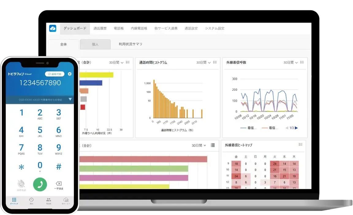スマホアプリやPC、IP電話機等のマルチデバイスに対応しており、働き方に合わせた電話環境を実現します。